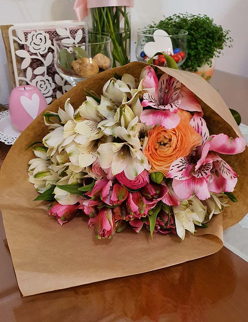 Romantični, veseli buket alstromeria svojom ljepotom i dugotrajnošću uljepšat će vrijeme osobi kojoj ga poklonite. Cvijet bogatstva i prosperiteta donosi boljitak i blagostanje domu u koji dolazi. Osnovni buket je 5 grana alstromeria (boja koju trenutno imamo na raspolaganju), ušuškanih u natur papir povezan finom mašnom, uz koji možete pridodati svoju poruku.. Na slici je prikazan *ekstra buket. Želite li povećati količinu cvijeća odaberite u padajućem izborniku. Također možete odabrati i neki od poklona iz naše galerije i time dodatno usrećiti primateljicu…