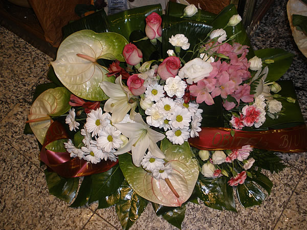 Aranžman veličine 120x80cm, sastoji se od anturiuma, ruža, margaritela, alstromeria, sezonskog cvijeća i zelenila. Aranžman dostavljamo na području Splita !