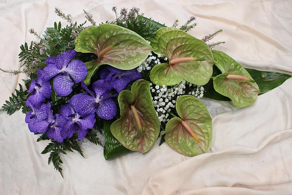Lijepi i poseban grobni aranžman os anturijuma, orhideja, dekoracija. Veličina 70x45cm