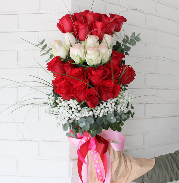 Želimo li doprijeti do nečijeg srca, a ne znamo način, poslužimo se isprobanom metodom. Buket “Tajna” ruže u dvije nijanse aranžirane u buket visine cca 50 cm.