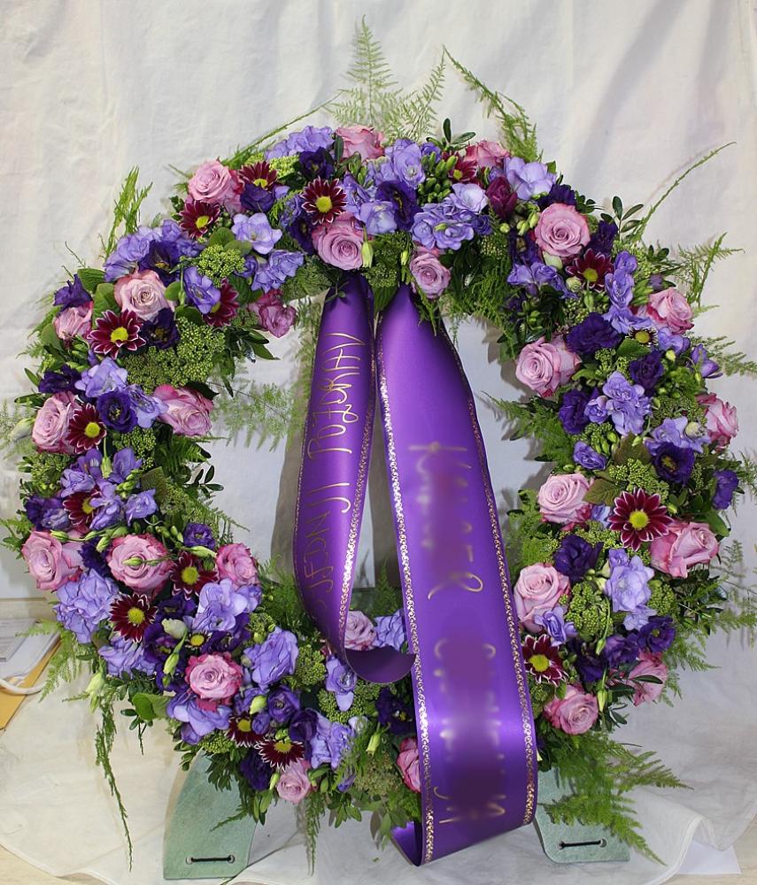 Okrugli vijenac od ruža i ostalog finog sezonskog cvijeća i zelenila. Vijenac zrači bojama kao i na slici. Standardni vijenac je Φ 60 cm. Na slici je prikazan *mega vijenac. Želite li veći vijenac s više cvijeća odaberite u padajućem izborniku. Takodjer možete pridodati i svijeće prikladno upakirane.